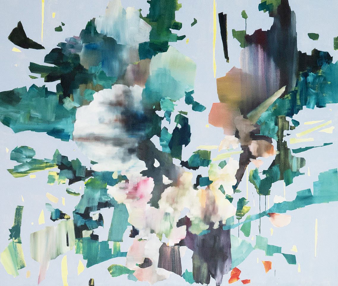 Es sind drei Dinge, die einem bei den Gemälden von Nozomi Hasegawa auf Anhieb auffallen: die Farben, die Formen, der kalte Hintergrund. „Komposition und Form sind mir nicht unwichtig, aber die Farbe spricht mich als Erstes an“, sagt die 37-Jährige. Tupfer, Striche und Flächen fliegen in einem geordneten Chaos über die Leinwände wie Herbstlaub oder Schneeflocken. „Manche Kompositionen passieren spontan, zufällig“, erzählt die Künstlerin. Steckt in diesem Vorgang nicht auch Magie? „Vielleicht. Ich möchte jedenfalls nicht darauf verzichten.“
