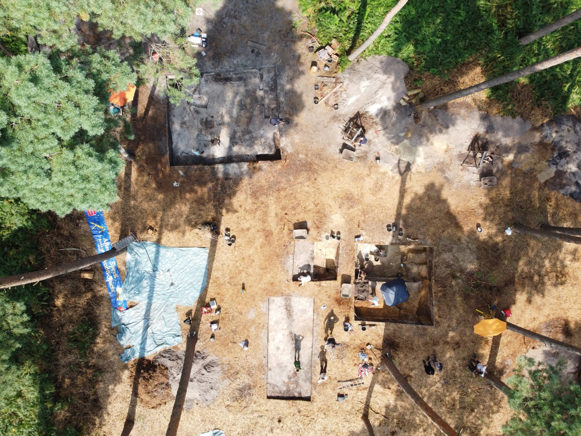 Die Grabungen des Jahres 2023 auf der Sassenburg aus der Vogelperspektive. Im Fokus standen die Lokalisierung des Burgtores und die Frage nach der Nutzung des Geländes zwischen Ringwallanlage und Aller.