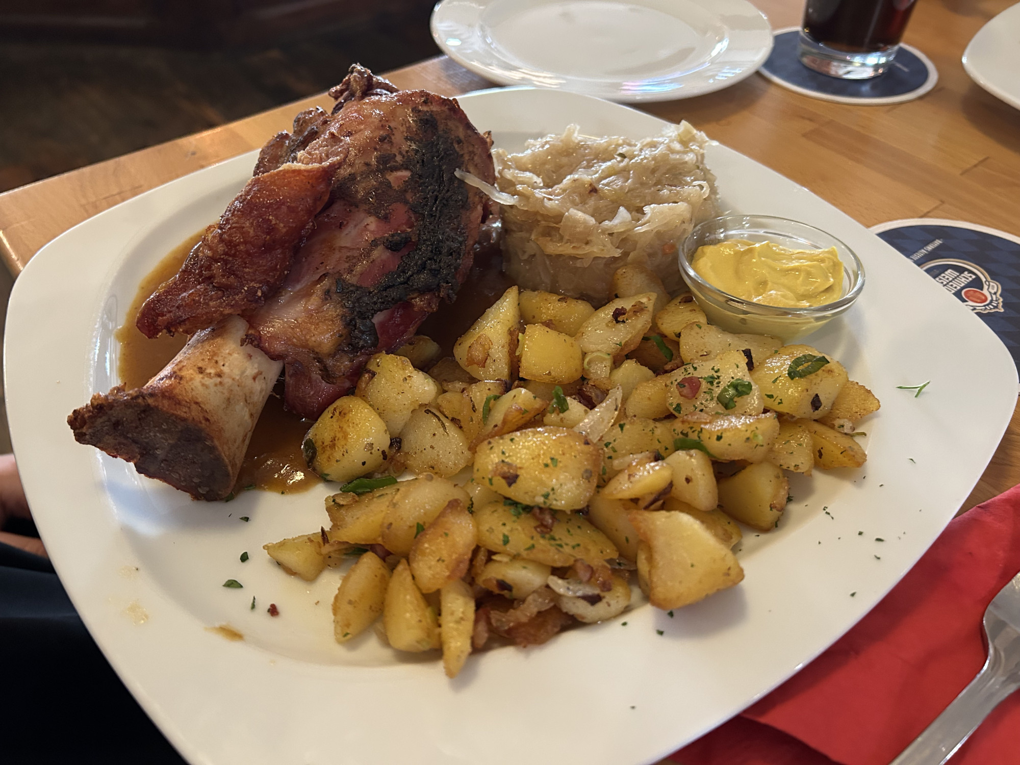 Kräftige Haxe, deftiges Sauerkraut und würzige Bratkartoffeln gehören in der Schützenwiese einfach auf den Tisch.