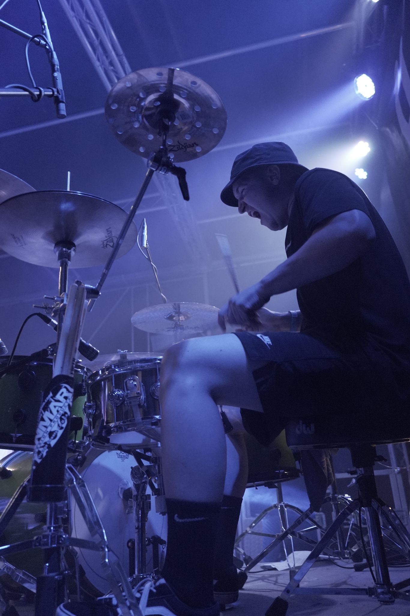 Was seine Punkrock-Mitmusiker betrifft, muss Lukas mit seiner zweiten Leidenschaft überraschenderweise nicht hinterm Berg halten: „Die anderen sind sowieso in der Electro-Szene zu Hause, die feiern das.“ Das drückt sich auch in der Besetzung des Festivals „Straff im Kaff“ aus, das Hagen02 am Samstag, 17. August, ausrichten. Der Spielplan sieht sechs, sieben Bands und etwas wengier DJs vor. „Da bringen wir extra Electro-Musik ein“, meint Lukas. Und zwar solche, die nicht üblicherweise auf Dorf-Partys zu hören ist, sondern auch mal schnellere Tracks mit höherer BPM-Zahl. „Solche Musik mögen meine Leute auch.“ Das erinnert an ein weiteres Projekt, an dem Lukas beteiligt ist: Als „Beat The Drums“ tut er sich mit einem anderen Schlagzeuger zusammen, nämlich Darius Pesel von Damage Report. Da schlüpft Lukas allerdings in seine DJ-Rolle, während Darius Schlagzeuger bleibt – und zu den von Lukas aufgelegten Tracks live trommelt. „Das Projekt war damals ein Grund, mir mein DJ-Tool zu kaufen“, verrät Lukas. Jetzt liege das Projekt zwar auf Eis, sagt Lukas, aber Ideen habe er: etwa, eigene Electro-Tracks zu produzieren, zu denen Darius live in die Felle drischt.