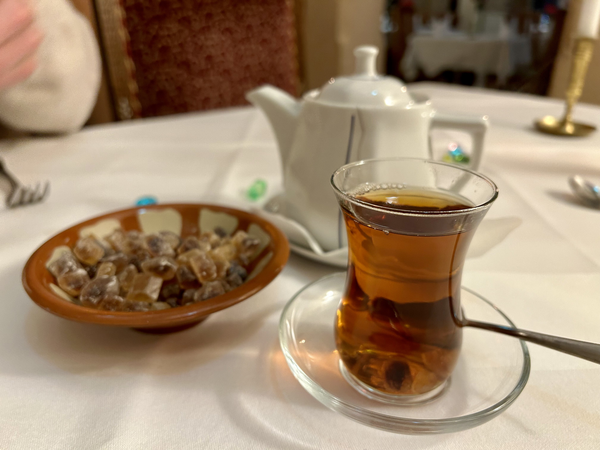 Unerwartete Freude: Der schwarze Tee im syrischen Restaurant Al-Dar ist spannend gewürzt mit Kardamom.
